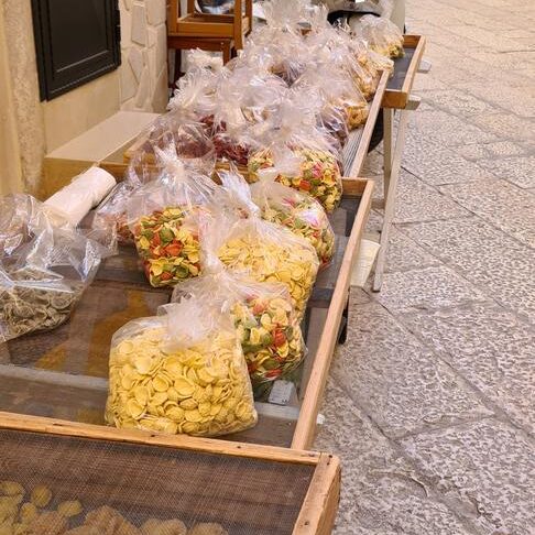 Jeśli byłeś/aś w Bari to znasz Nunzię, która siedzi na ulicy i robi ten typowy dla Apulii makaron. Razem ze swoimi sąsiadkami oczywiście, bo na Via delle Orecchiette jest ich tam całkiem sporo. Pierwsza wersja, z która się tam spotkasz to orecchiette con cime di rapa, czyli ze wspomnianą już wcześniej rzepą brokułową. Ale ten kształt makaronu jest podawany tutaj na tysiąc różnych sposobów, również w wersji pikantnej all’assassina (więcej o tym daniu przeczytasz TUTAJ).
