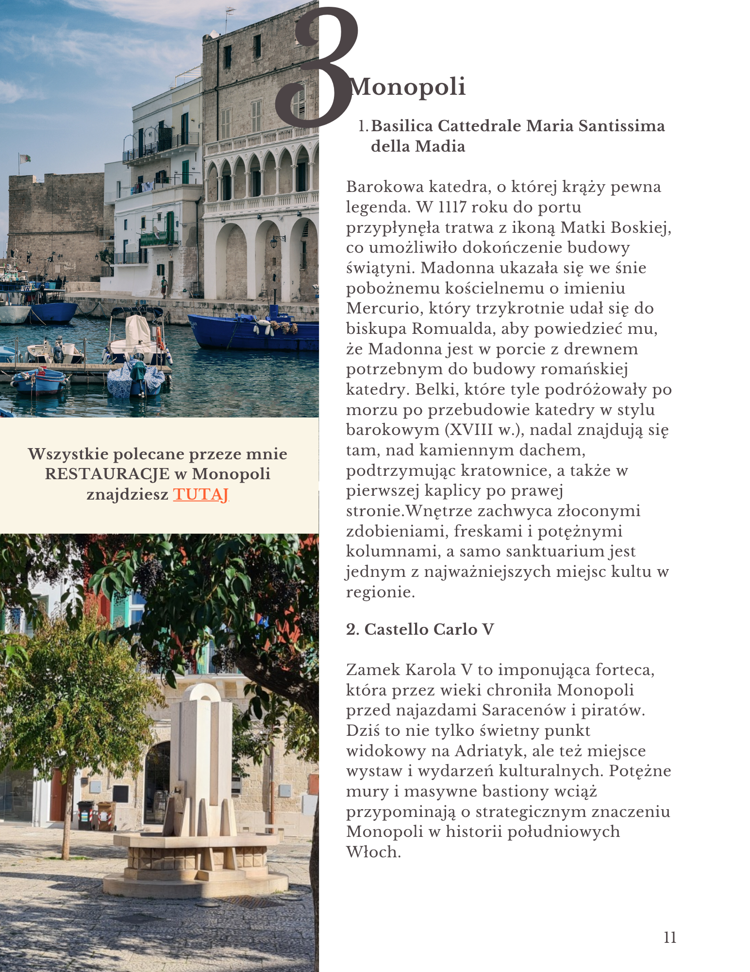 Szukasz gotowego planu na podróż po Apulii? Ten krótki, esencjonalny przewodnik to Twoje kompendium na udany wyjazd! Bari, Polignano a Mare, Monopoli, Alberobello, Matera i inne perełki południa Włoch – wszystko w jednym miejscu.